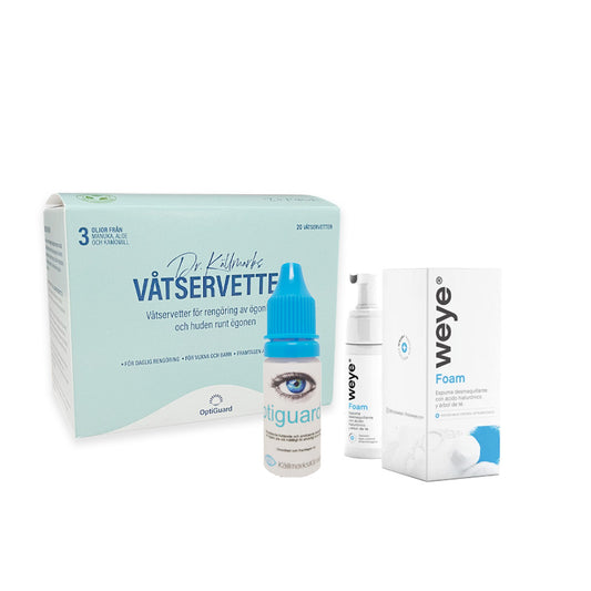 Effektiva ögonlocksrengöringsprodukter för rengöring och vård av ögonlock och huden runt ögonen. Håll dina ögonlock fräscha och fria från smuts, irritation och inflammation. I vårt sortiment hittar du produkter som är särskilt bra vid torra ögon med blefariter och Demodexkvalster. Vid ögonhygien och daglig ögonlocksrengöring kan du lindra symtom vid bakteriell och allergisk konjunktivit och blefarit, samt vid kontaktlinsanvändning. I vårt sortiment för ögonlocksrengöring hittar du produkter som är särskilt bra vid blefarit behandling, demodexkvalster och torra ögon. Produkter från välkända varumärken som Dr. Källmarks, OcuSOFT, Oust Demodex, Blephaclean, Blephasol, Blephademodex och Blephagel.